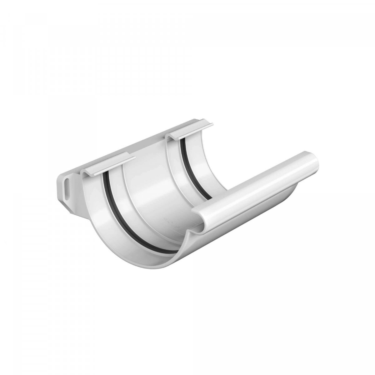 Соединитель желоба ТЕХНОНИКОЛЬ ПВХ МАКСИ снежно-белый – связующий элемент в водосточной системе. Используется, чтобы соединять между собой желоба.